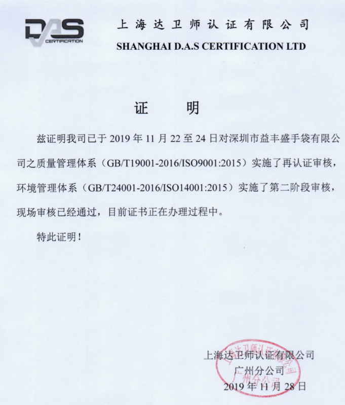 我们通过了ISO9001国际质量管理体系认证、ISO4001环境管理体系认证、amfori BSCI对外贸易协会认证、DISNEY制造商认证并取得了证书。